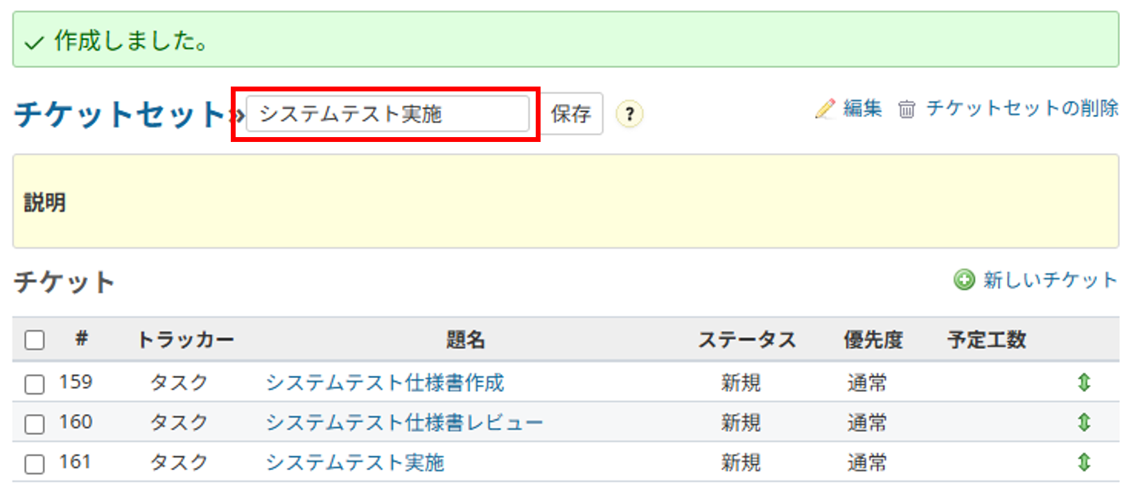 システム開発のチケットセット例