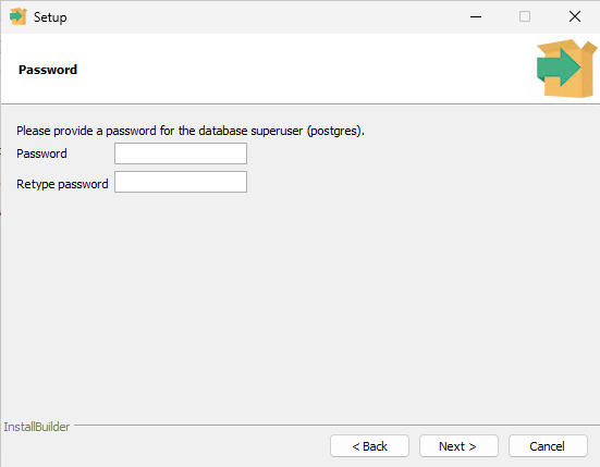 スーパーユーザーのパスワードを設定します。後ほどpsqlシェルを起動する際にここで設定したパスワードの入力を求められますので忘れないようにしてください。